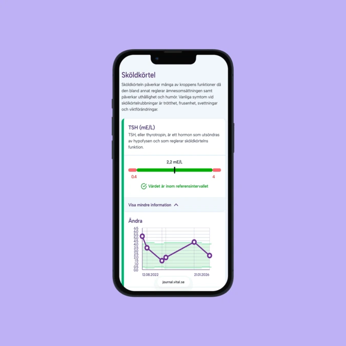 Inom några dagar får du dina provsvar i din personliga journal, med läkarkommentar och förklaring om vad just dina värden betyder.